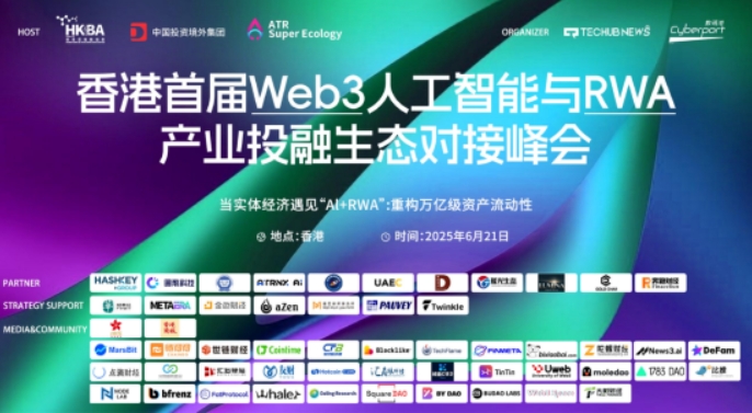 2025年6月21日,香港数码港成功举办「香港首届Web3人工智能与RWA产业投融资生态对接峰会」,由香港区块链协会、中国投资境外集团、ATR超级生态联合发起,Techub News与数码港联合承办,携手HashKey Group、圆币科技、永和资本集团、ATRNX.AI、UAEC、奔跑财经、GOLD CHAIN、曼昆律师事务所、瑶光生态、光辉资本、财华社、PAUVEY Capital、Twinkle、aZen、香港卫视、香港商报、MINAX品牌交易所、复星国际证券、丰谷基金、正金证券、浙江行早创投、香港数字投行、BEI LAI DE(GROUP)、东皓证券、MetaEra、金色财经等100余家机构共襄盛举。本次峰会汇聚新加坡、香港及全球资本,聚焦“稳定币+RWA+AI”如何重塑全球资产流动性,深入探讨AI与RWA在金融、医疗、能源等多行业的落地场景,展示多元投资案例。